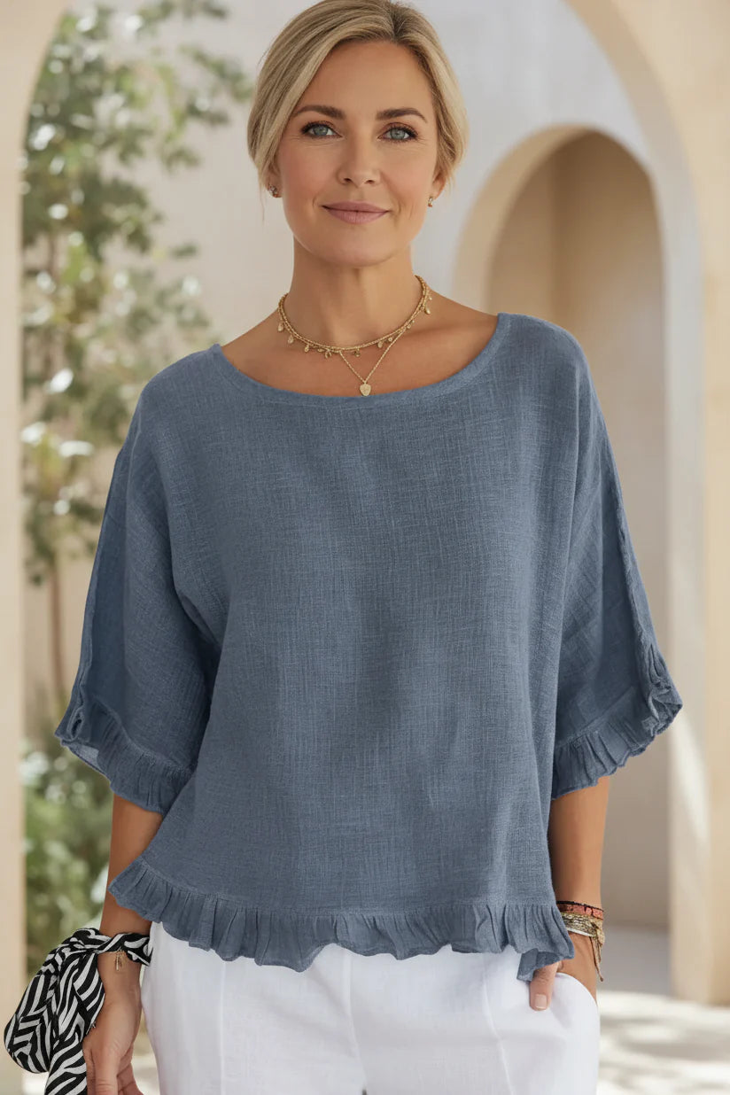 Introducing the Brielle casual flow top, designed for women who love to combine comfort with a chic, relaxed look. Whether you're out for a stroll or lounging at home, this top will be your go-to choice for any casual occasion.